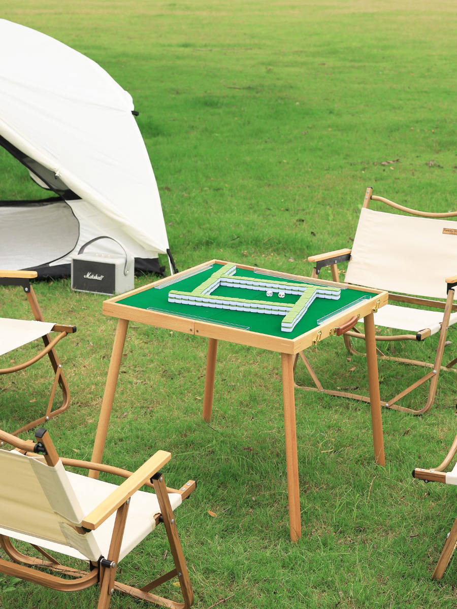 露营宜麻将,好友齐聚、好兴致立马up!觉得麻将桌太笨重的可以试试这种,手提箱造型、展开后安装上桌脚就可以秒变麻将桌!还自带麻将哦!简直是我的露营心头爱!