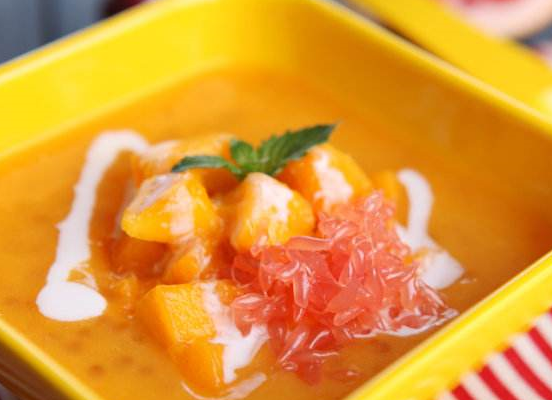杨枝甘露:是一道纯正的港式甜品,主要选用的食材有柚子,芒果等。在制作过程中应放入西米,这样制作出的杨枝甘露味道才会更加宜人。杨枝甘露由于放入的水果比较多,所以富含大量的维生素。这道甜品在香港本地十分受欢迎,既能够解暑,西米的香味在口中能够调动人们的味觉。
