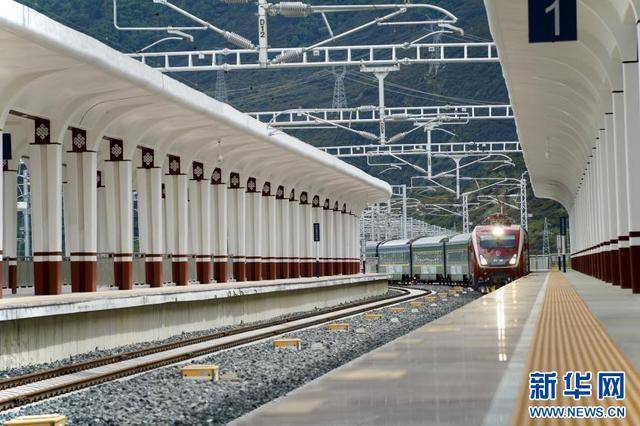 7月21日,拉萨至林芝的火车驶入林芝火车站。新华网发 旦增晋扎 摄