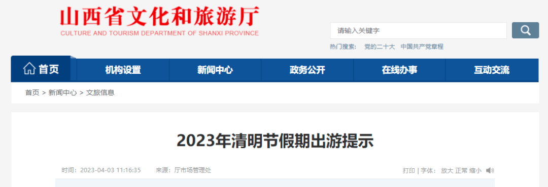 2023年清明节假期将至,返乡祭祖和踏青出游人数众多,周边游、短途游升温,为使广大游客度过一个安全稳定的清明节假期,山西省文化和旅游厅温馨提示您: