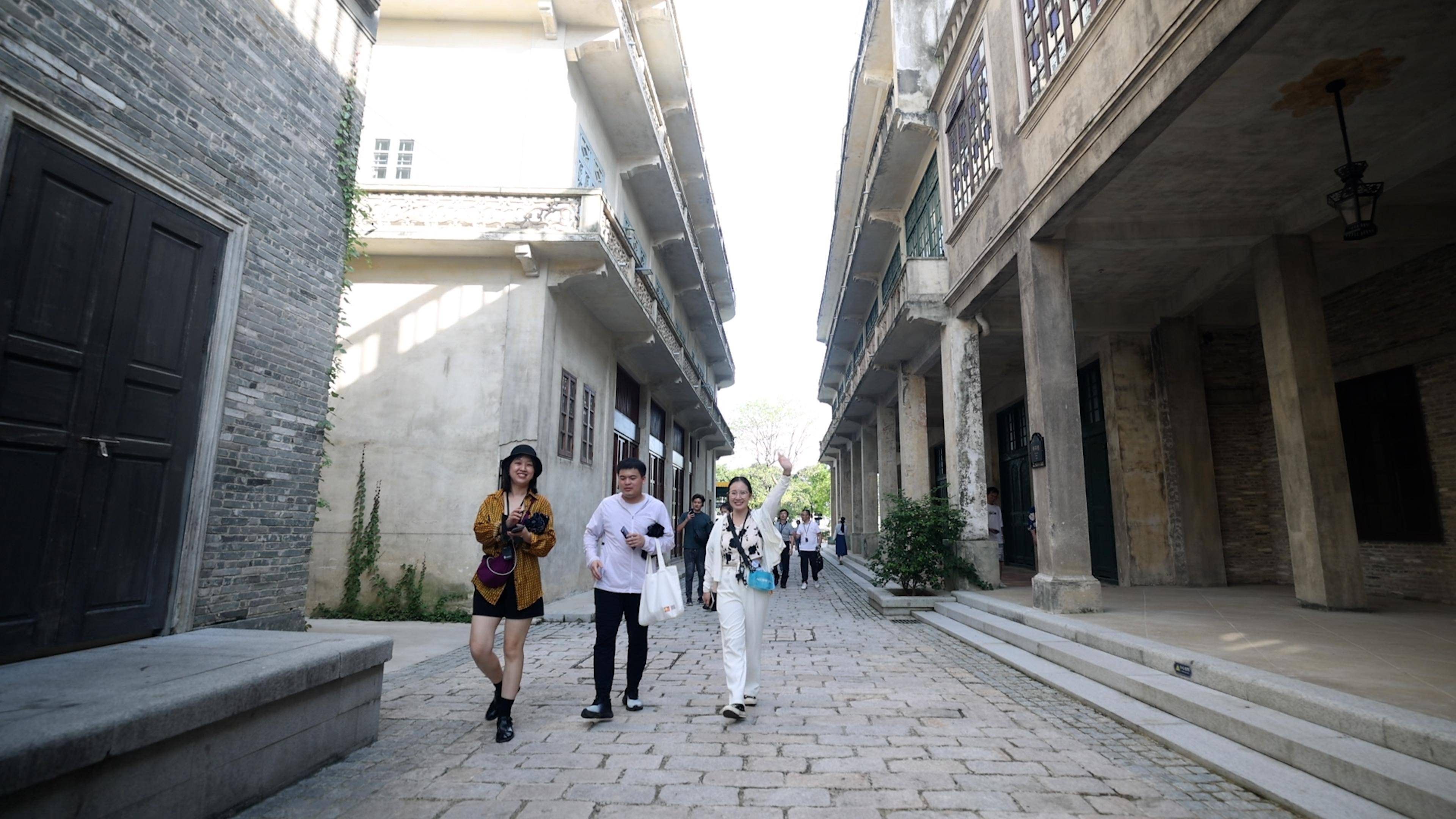 采风团行走在开平赤坎华侨古镇。