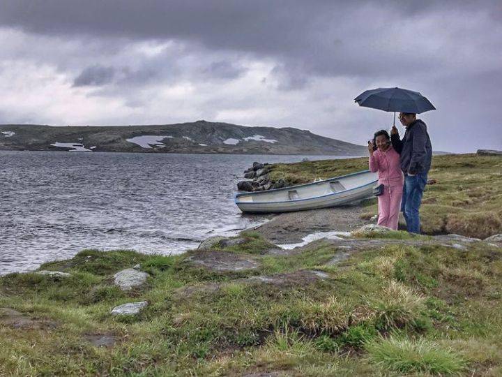 离开埃德,天放晴了,车行驶在清荣峻茂,悬泉瀑布飞漱其间的哈当厄尔峡湾的山谷中,不断地向上盘旋,与海拔一千多米的哈当高原不期而遇。在寒风凛冽,微雨蒙蒙,挪威最本真的阴郁影调中,惊叹于眼前的一切:雪山湖泊、草原湿地,连停在湖边的一叶扁舟也显得格外的迷人。