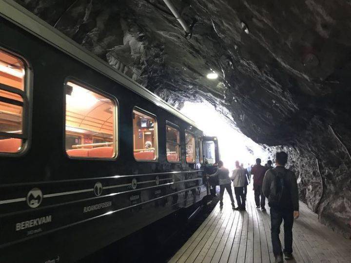 20公里的铁路线,火车爬了45分钟,到达了山巅的米达尔站。从低海拔的峡湾直至高山,农庄、森林、湖泊、瀑布、雪山……世界上最为壮美的铁路线,给我们带来了无限的风光。再往前,火车是开往卑尔根 ,一直通向首都奥斯陆。