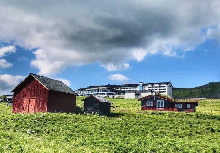 经过一天的舟车劳顿,风尘仆仆地赶到了牛羊成群,芳草鲜美的另一座高原山庄酒店。六月是挪威鲁冰花盛开的季节,山中一片片的淡紫色,为本就另类的风景更添梦幻的色彩。