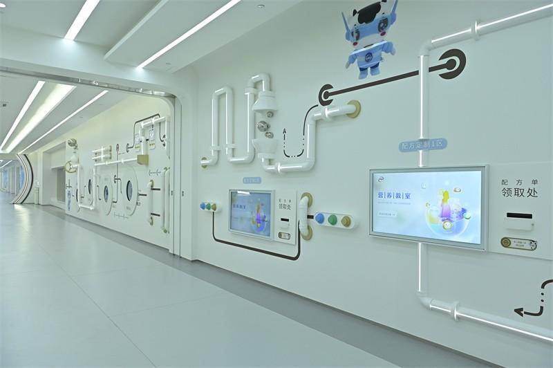而在“营养教室”,有全球首个定制化奶粉配方互动项目,可以通过分析个人基础信息和健康诉求,让消费者拥有一份专属的营养配方。在奶粉基地的智能立体库,通过立体悬浮球沉浸体验、影片视觉感受及智能化电容玻璃直观展示,全面、详细地了解智能立体库。智能立体库配备智能化仓储系统,能够实现全自动、高效、高能、高速运行,使整个库房在任何时间都能保持恒温、恒湿,且空气洁净程度与生产车间一样达到了10万级的标准。同时,奶粉基地还是首家引入牛奶水-闭式回收利用技术的工厂,这项技术将牛奶中蒸发出的水进行再次利用,同时将雨水和中水进行收集处理,作为生活用水和浇灌用水等二次利用,真正实现绿色、环保,助力实现“双碳目标”。