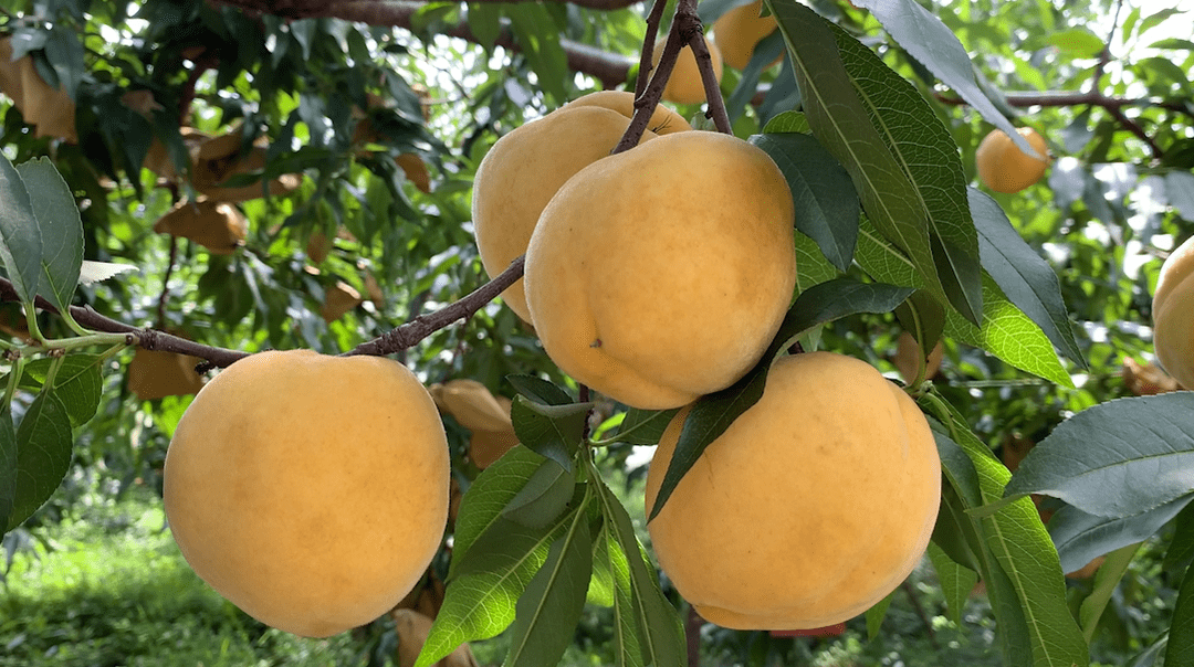 种植户周香建表示今年因为雨水充沛,果子长得非常漂亮,他5亩黄桃今年的产量大约3万斤,刚才广东的老板客商已订购160箱。