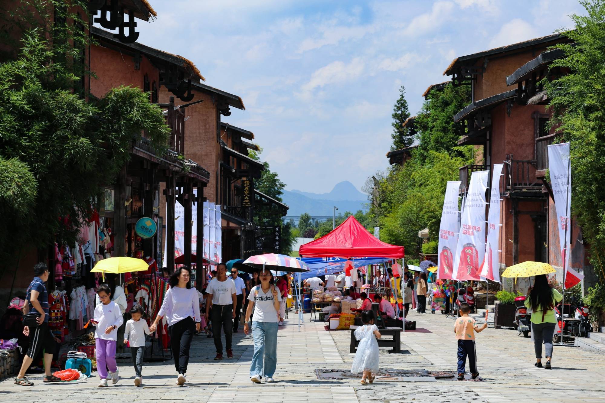 游客在野玉海国家级旅游度假区海坪彝族风情街游览(赵桦 摄)