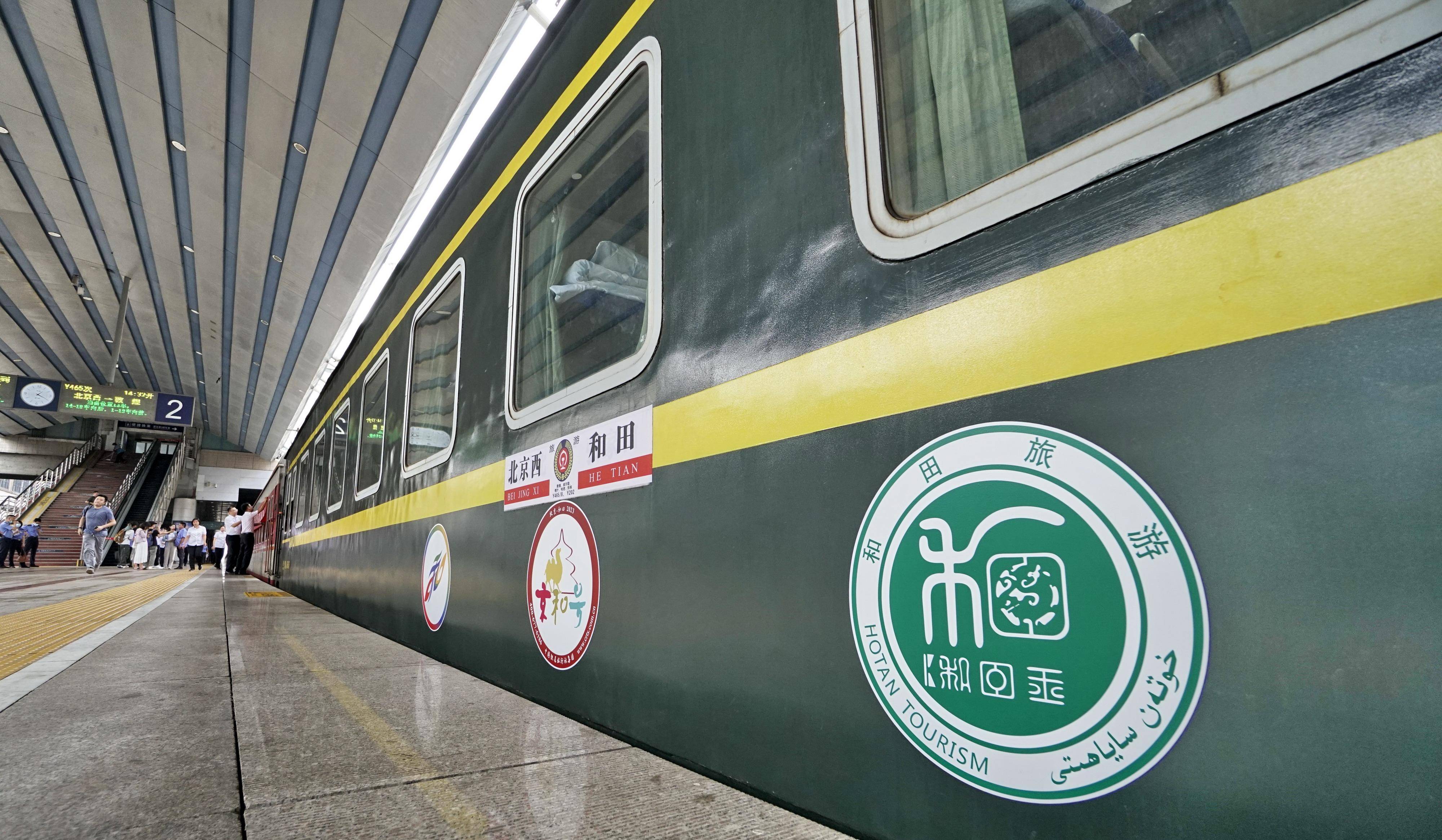 当日,北京到新疆和田的“京和号”旅游专列准时从北京西站出发,这是中国铁路北京局集团2023年首趟开往新疆的旅游专列。“京和号”援疆旅游专列自2015年起先后开行28列,累计运输游客约1.4万人次,有效促进了北京与新疆和田两地交流,成为北京与新疆旅游互通的桥梁。