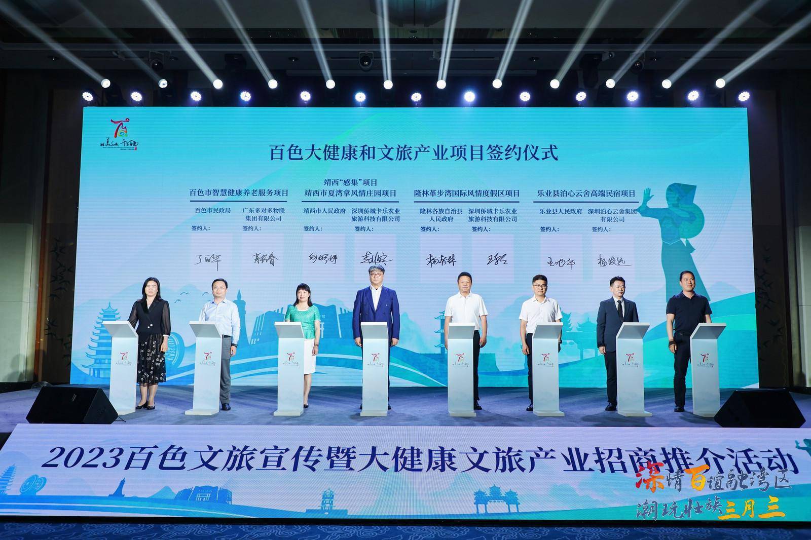 4月6日,2023年“深情百谊融湾区 潮玩壮族三月三”文旅宣传暨大健康文旅产业招商推介活动在深圳举行。本次推介会上,百色与深圳两地文化和旅游行政管理部门签订了《深百文旅合作框架协议》,就推动红色研学旅游、促进文化艺术互鉴、加强项目合作和文化旅游宣传等多个方面达成一致。本次推介会百色市重点推介大健康和文旅产业招商项目15个,实现现场集中签约项目6个共9.79亿元。