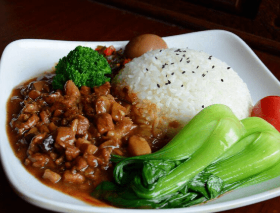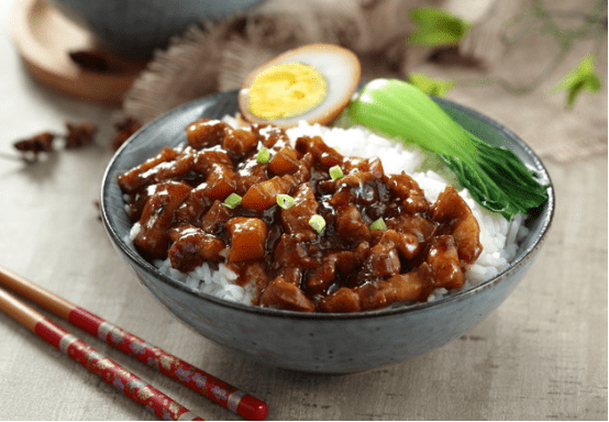 卤肉饭是通过稻米、五花肉、干葱头、木薯淀粉、姜、蒜、生抽、八角、酒、老冰糖、五香粉、白胡椒粉等材料制作。 这是台湾地域比较常见的,都是经典小吃。 卤肉饭的特点取决于猪肉酱和汁水,他们是制作的关键所在一部分。 卤肉饭在台南的、台湾台中、台北市制作方式和优势都有差别。 台湾的饭菜小吃各形各色,但是说起其中最为有名的,当推卤肉饭。 卤肉饭,也被称为鲁肉饭,台湾小吃之一。