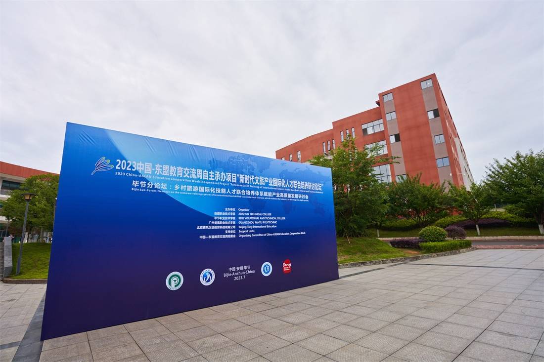 7月22日,2023中国-东盟教育交流周自主承办项目“新时代文旅产业国际化人才联合培养研讨论坛”毕节分论坛在毕节职业技术学院举行,此次研讨主题为“乡村旅游国际化技能人才联合培养体系赋能产业高质量发展”。