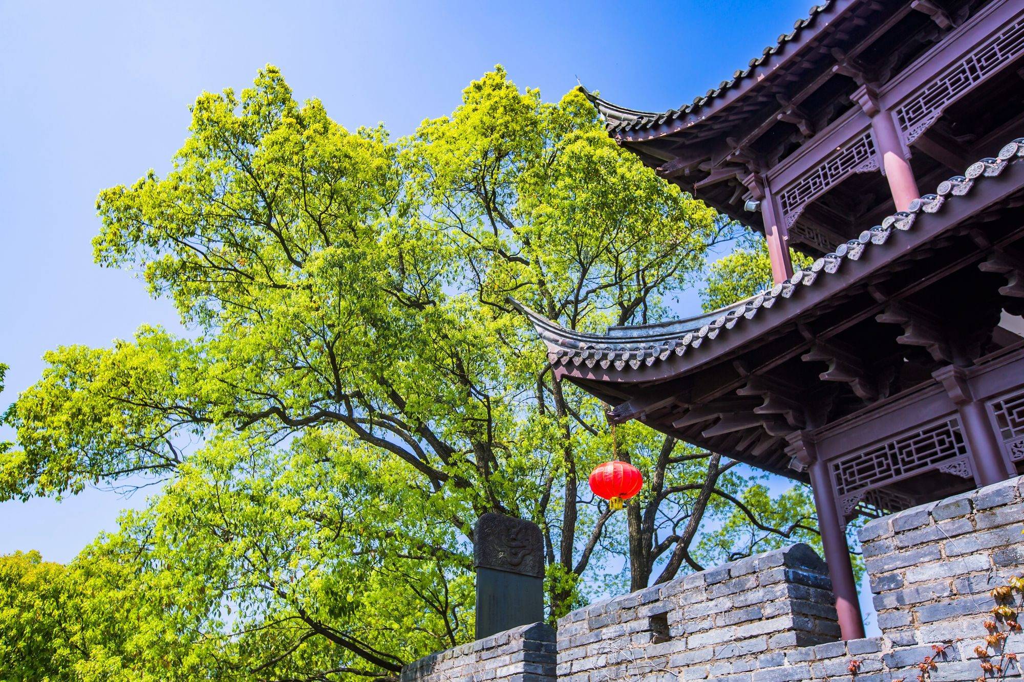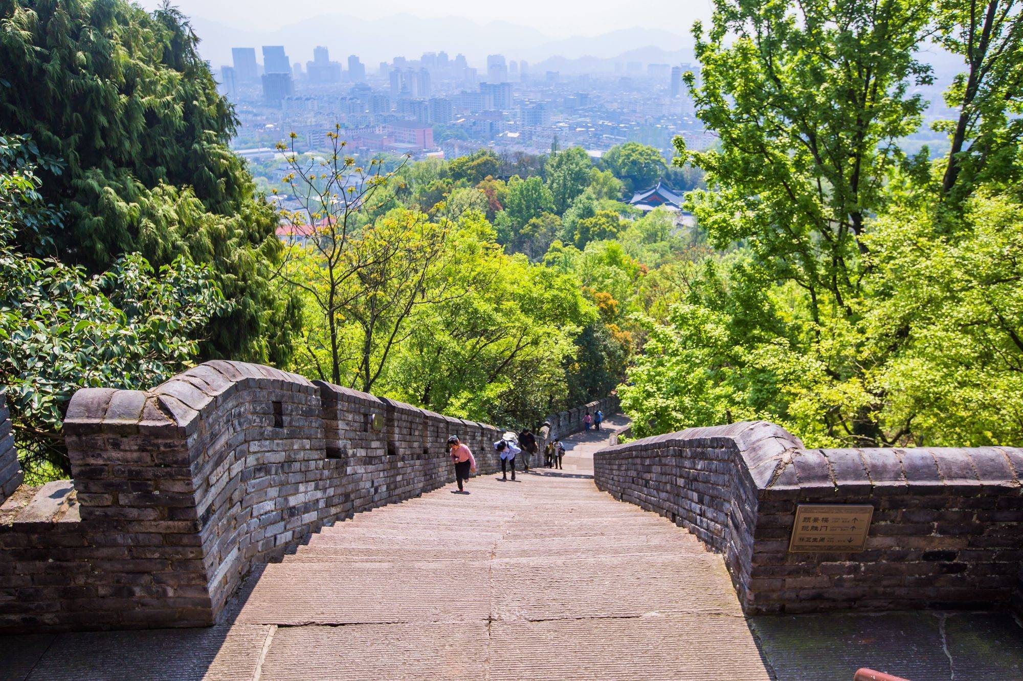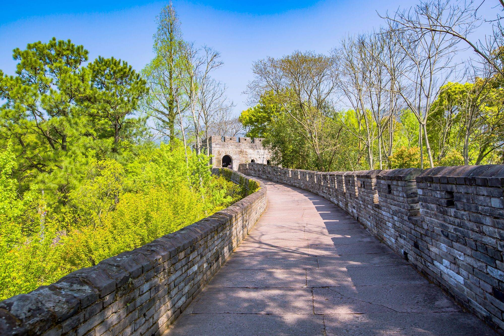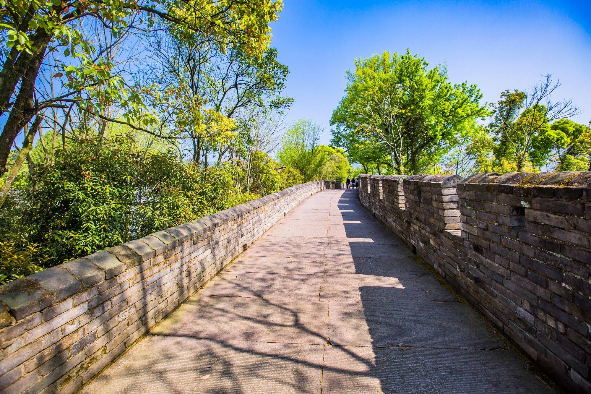 正是盛春时节,古老的城墙掩映在茂盛的树丛中,雄浑之中也有着江南的温柔和婉约。