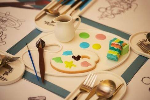 为向华特迪士尼动画制作室传奇的Ink & Paint部门致敬,全新餐厅“艺彩厨”从室内设计、墙上的手绘画作、餐具、摆设到大厨团队精心设计的菜单,无不以粉蓝、红色、绿色、黄色四个丰富的色调着墨,为用餐增添艺术体验。