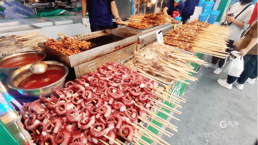 记者在现场看到,金沙滩啤酒城设有多个啤酒大篷,烧烤、涮串、小龙虾、铁板烧、海鲜大咖、色泽诱人的啤酒小食齐聚,每个大篷内上演着不同的节目。位于星光大道主舞台东侧的哈舅美食广场,集合美食小吃、文创潮品、多品类啤酒、节目演艺于一体。