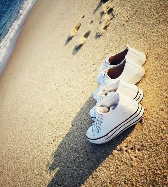 拍了这张照片,一个浪打过来,拯救鞋子不及时,每人的鞋子都湿了一只