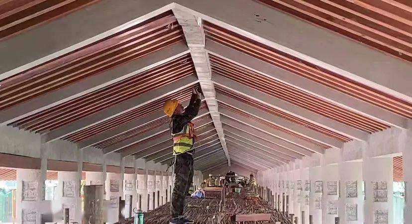 医圣广场两侧,是中轴线上的东西医圣廊桥。长长的廊桥内,石柱与木制顶棚营造出一种颇有意境的纵深感,工人们正在脚手架上对顶棚刮腻子。朝圣广场北侧,是医圣文化园主体场馆——国家中医药博物馆医圣馆。这座高51.2米、总建筑面积30500平方米的重量级建筑看上去宏伟气派,将是未来国内最大的中医药博物馆。