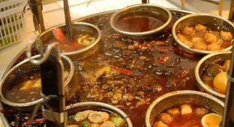 一大锅做好的卤水汤,如果有人点了一份,老板就会拿一个笊篱放进去粉条和其它石材在卤水里面煮好,然后再加一些佐料,就可以吃了,这锅卤水很可能是老板好几天都不换!然而,大家却拒绝不了它的那种麻辣的美味。
