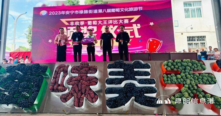 本届葡萄节不仅展示了当地苗族风情,有热闹的节目表演,还有让人看了就流口水的农特产品展示一条街及“大胃王之吃葡萄比赛”等互动活动,吸引了广大游客驻足欣赏和沉浸式参与体验。此外,此次葡萄节延续了深受广大游客喜爱的“浑水摸鱼”、“徒手捉鸭”、葡萄“大王”评比活动,评比活动中,村民段国芳和金光全用自己勤劳的双手种植出来的香甜葡萄征服评审团,分别夺得“维娜莎”“康能”葡萄大王一等奖,也进一步打响了“禄脿葡萄”品牌,提高了禄脿葡萄的知名度。