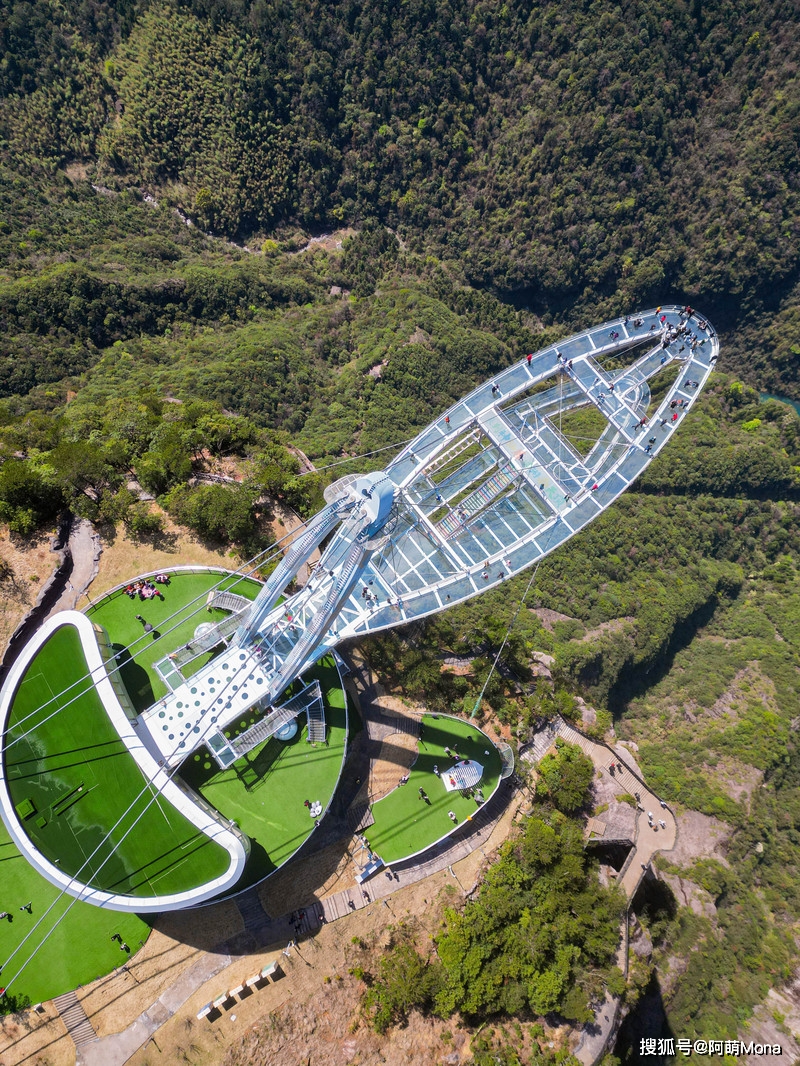 外形像是太空飞船又像是远航的游轮,因为是玻璃观景平台,每走一步都是步步惊心,恐高患者误入。