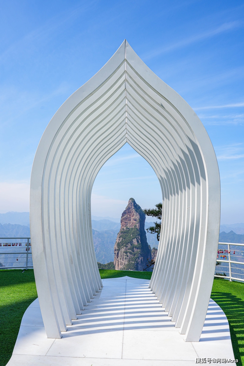 南天顶观景台旁有个纯白的朝拜台,中间正好可以漏出观音峰的全貌,很适合打卡拍照。