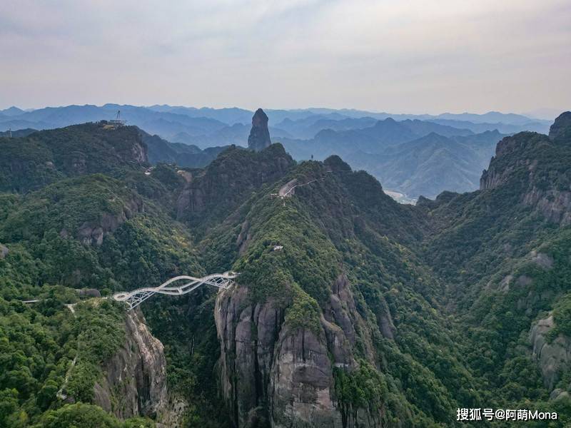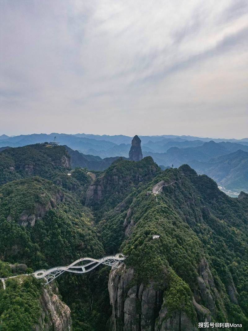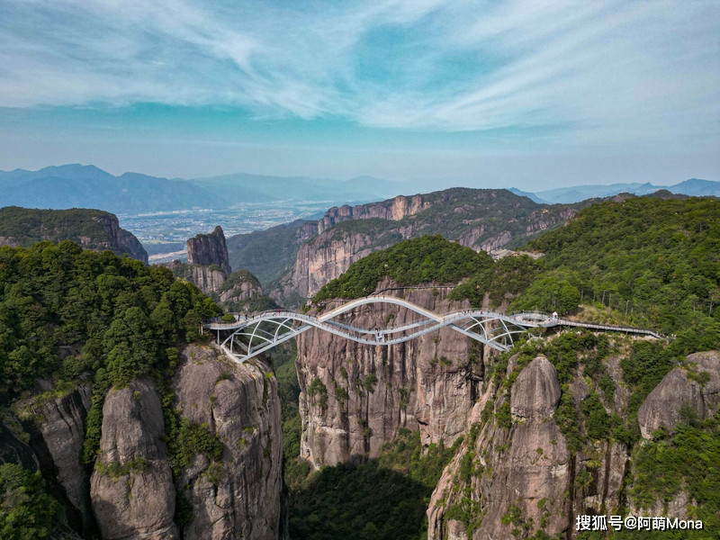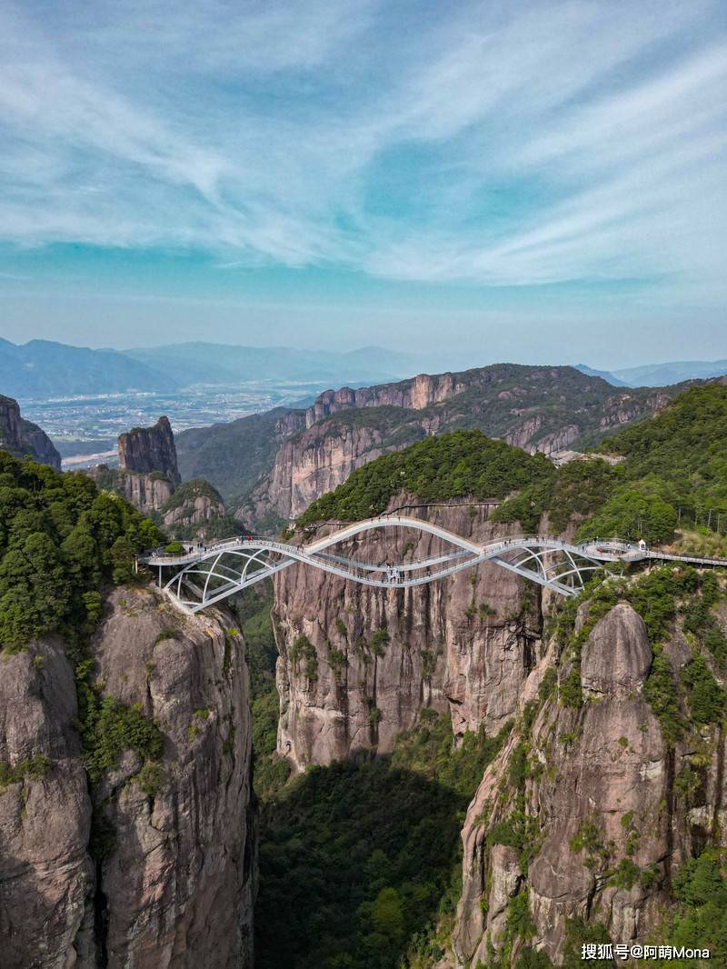 如意桥,从高空中俯瞰就是一柄悬在峡谷之间的玉如意,刚柔并济的造型与神仙居的自然风光完美地融为一体,和莲花台一样是这里的网红景点。