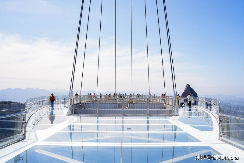 南天顶是位于869米悬崖峭壁之上的单塔斜拉悬挑双层钢结构玻璃观景台,观景平台分为2层,分别是游览观光层和运动体验层。