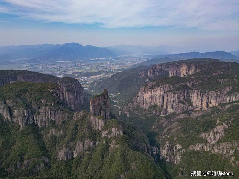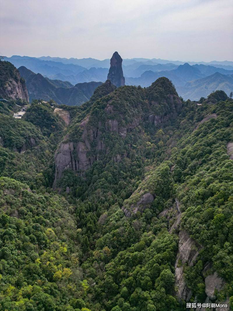 观音峰是神仙居的标志性景观,海拔919米,岩高200多米,高耸入云。