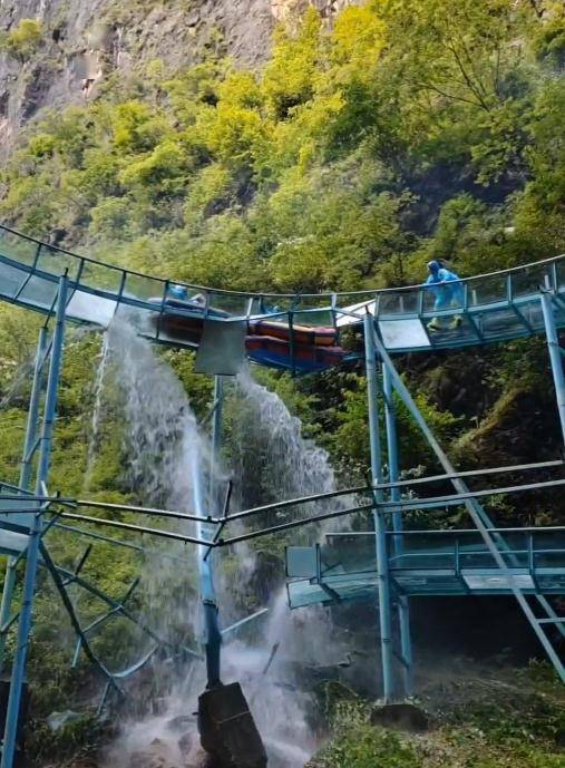 一段景区玻璃滑道断裂