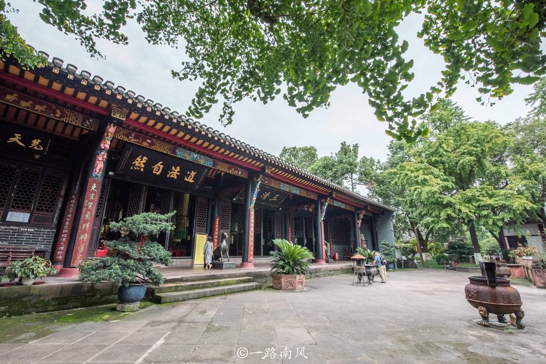 这座宫观位于成都市一环路西二段,始建于周朝,已经有2000多年的历史,历经兵火等原因,屡废屡建,现在看到的建筑群大多数是清朝康熙年间开始陆续重建的,主要建筑包括山门、三清殿、混元殿等,最让外地人感到不可思议的是宫观内还有一个茶座,生意不错。