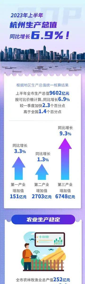 在上半年,杭州市的服务业增加值已达到6748亿元,同比增长9.3%,这一增长速度比一季度加快了2.4个百分点,并高于全国平均水平2.9个百分点。以信息技术服务业为主体的服务业增更是增长了10.5%,这一数据侧面展现出了杭州作为“重塑数字经济第一城”的决心和实力。