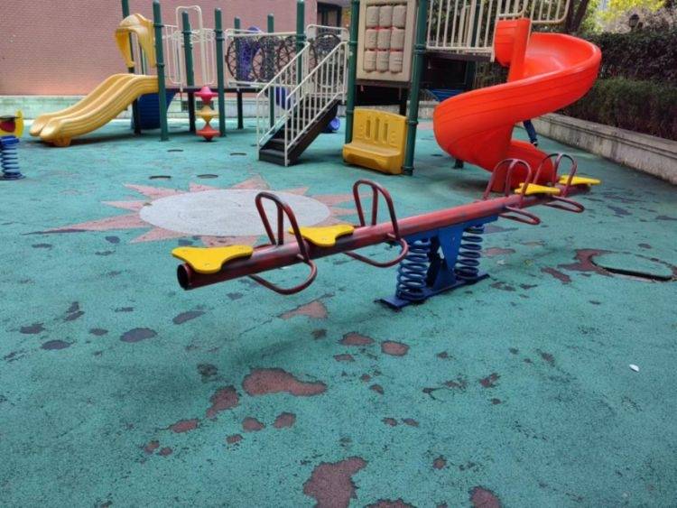 香港丽园小区建于2000年,儿童乐园是随着小区第一期住宅楼宇配套建成,面积为150平方米。随着时间的推移,儿童乐园塑胶地坪由于长期使用,出现了不同程度的破损、褪色。地面老旧的问题也给孩子们的嬉戏玩乐带来一定的安全隐患,玩耍时难免会因为地面不平整而磕绊。“原来幼儿园放学后,总喜欢带小朋友来这里玩。地面坑坑洼洼的,就怕一绊倒,头撞到器材上,担心出意外。”居住在2号楼的王阿姨说。