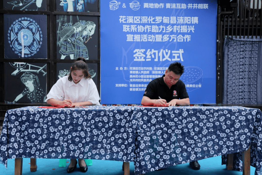 7月23日,花溪区与罗甸县沫阳镇联系协作助力乡村振兴宣传推介活动和多方合作签约仪式在青岩镇龙井村举行。