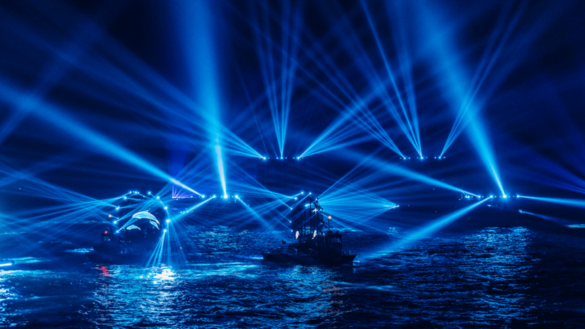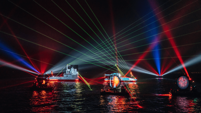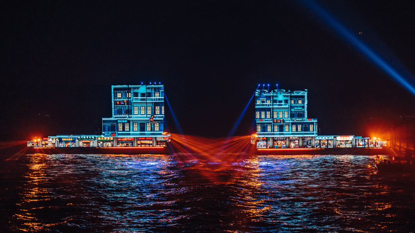 流光的海潮便陪着水中的船鸣笛启航,缓缓驶向那个战火纷飞的年代。