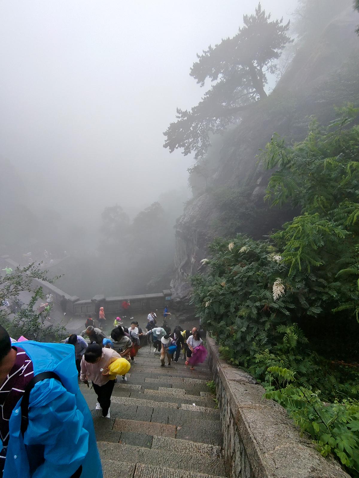 雨天湿滑,即便体力很好的人,也需要一步步的往上慢慢来。