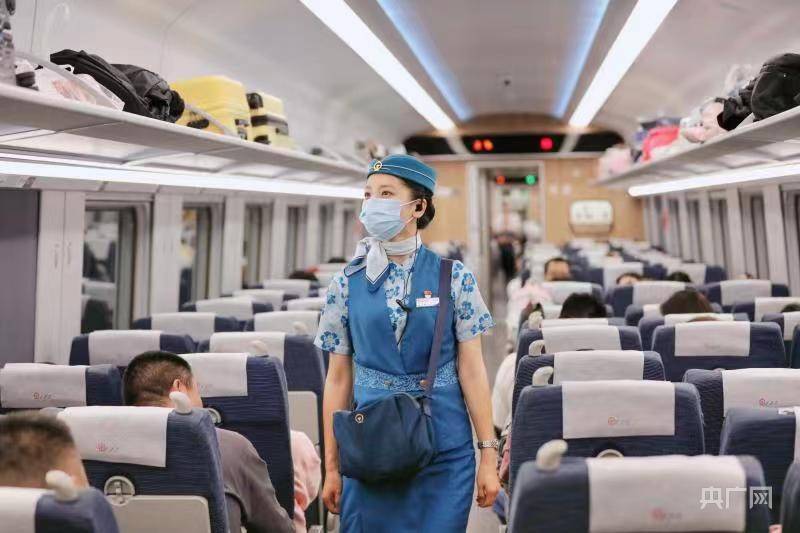 中老铁路国际旅客列车乘务员正在巡视车厢 (央广网发 杨紫轩 摄)