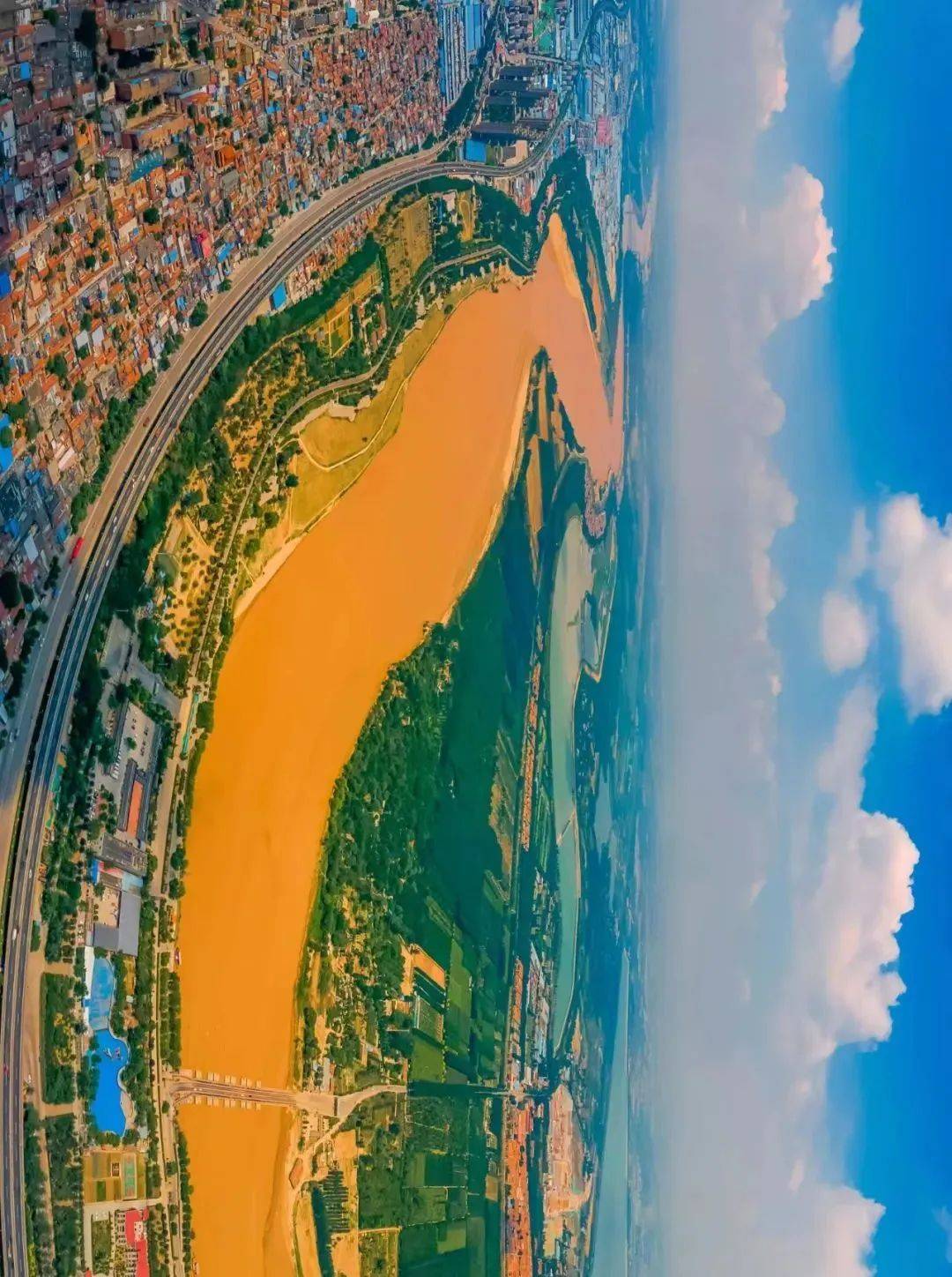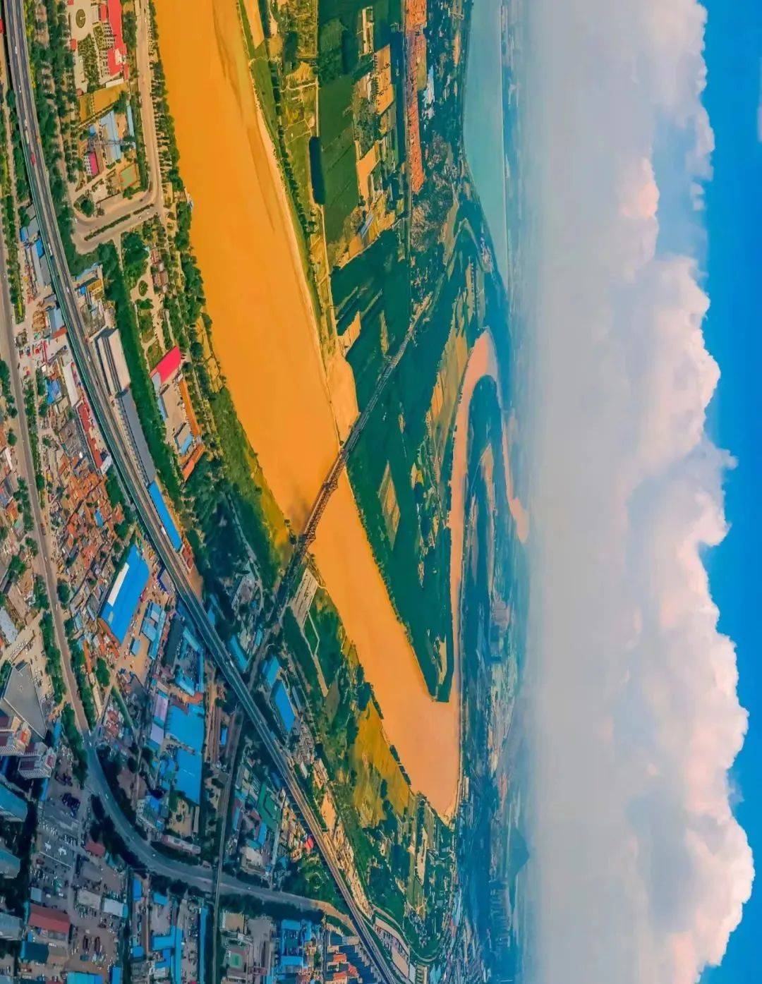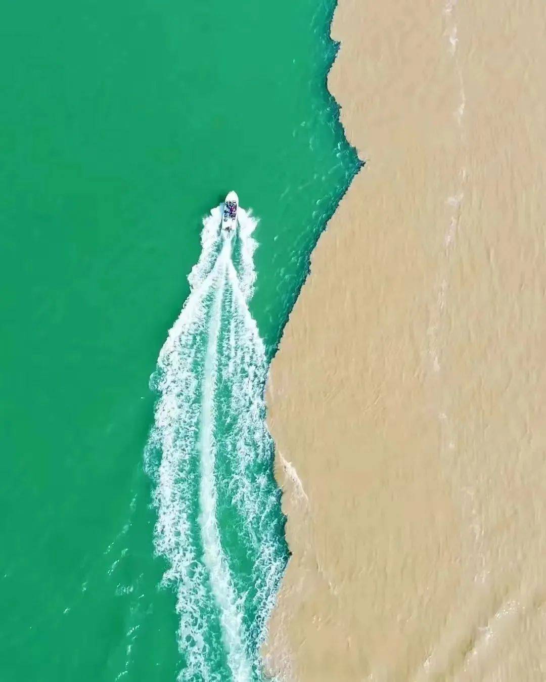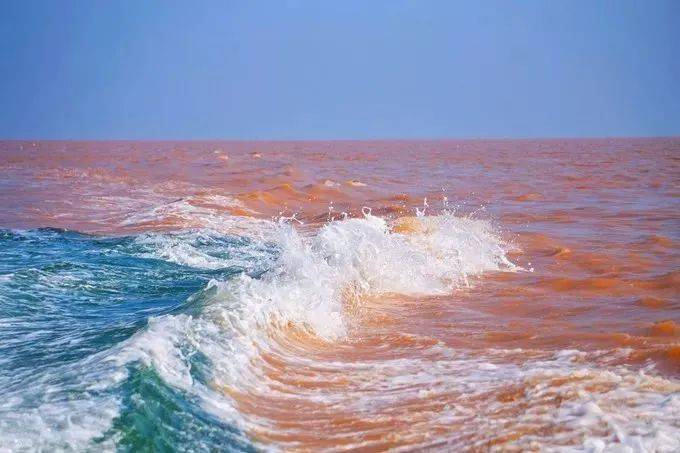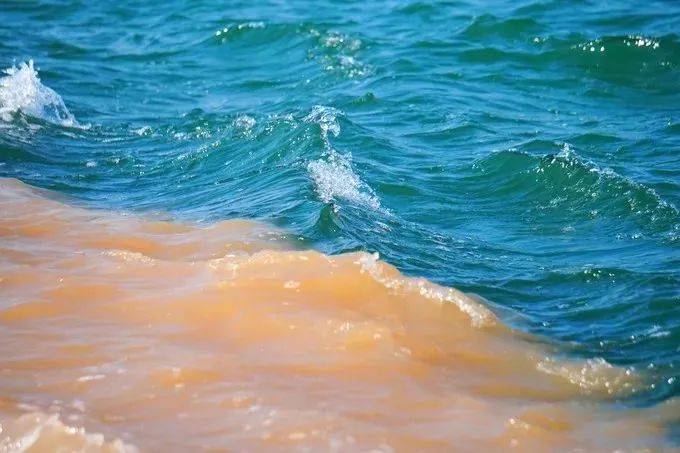 泥土与大海的气息、黄色与蔚蓝相互碰撞却不相融,在交界处,好似一条蜿蜒的长龙,在河与海之中遨游!