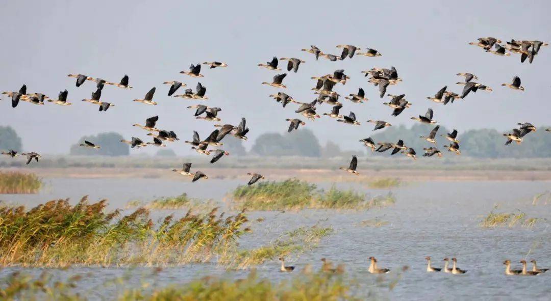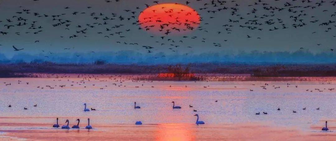 大天鹅、丹顶鹤、东方白鹳……众多的珍稀鸟类于此栖息。漫步湿地,群鸟或驻足、或翱翔,这里是绝美的候鸟云集地。