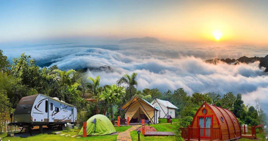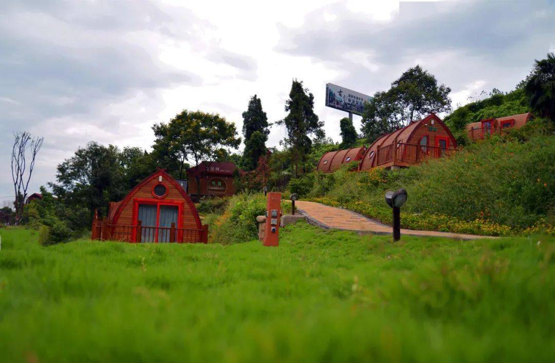 古剑山露营基地占地约130亩,是典型的山地型露营地,采取阶梯式组团式建设,分为时尚露营区、特色露营区、自由露营区,并通过人字型道路将各功能区进行串联。整个露营区有房车小院、木屋营位、水滴轻奢帐篷,还有特色帐篷、固定帐篷以及自由帐篷,可一次性接待游客300多人。