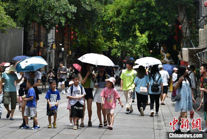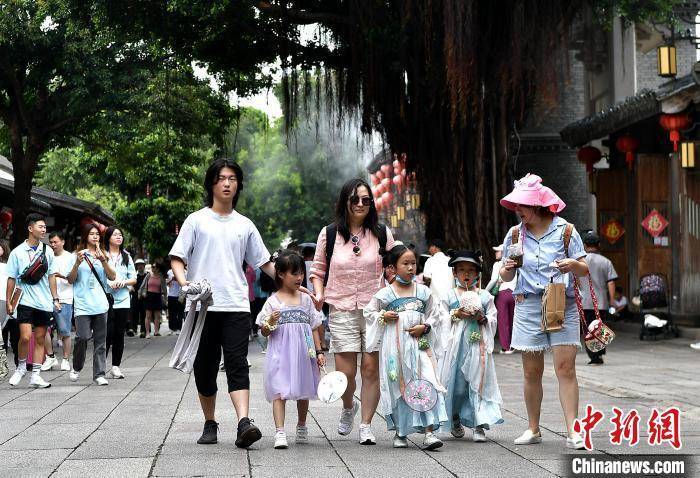 图为7月25日,家长带着小孩在福建福州三坊七巷游玩。 张斌 摄