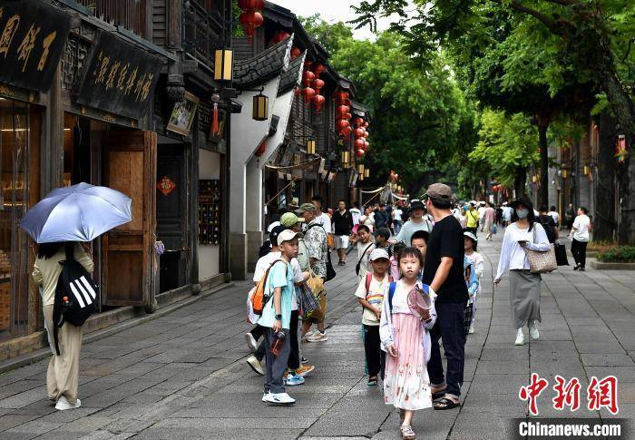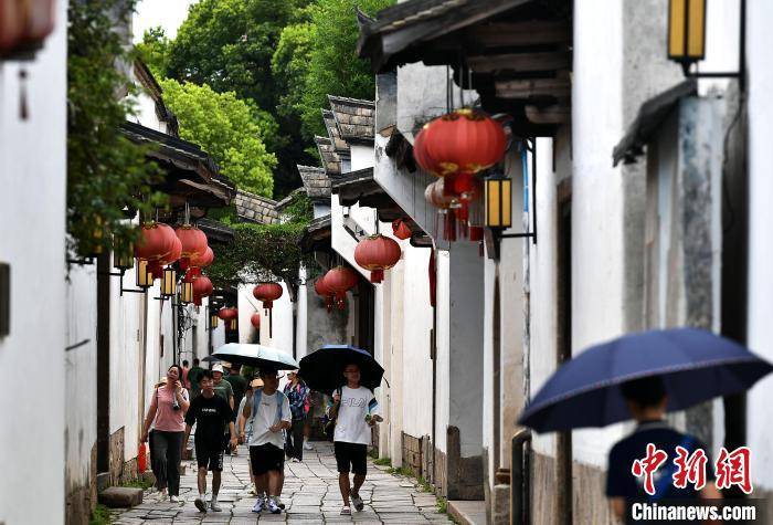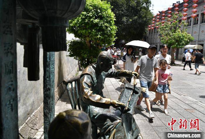 7月25日,民众在福建福州三坊七巷游玩。暑期,前来福州三坊七巷旅游的游客络绎不绝。福州三坊七巷为中国现存规模较大、保护较为完整的历史文化街区,有着“中国城市里坊制度活化石”“中国明清建筑博物馆”的美称。