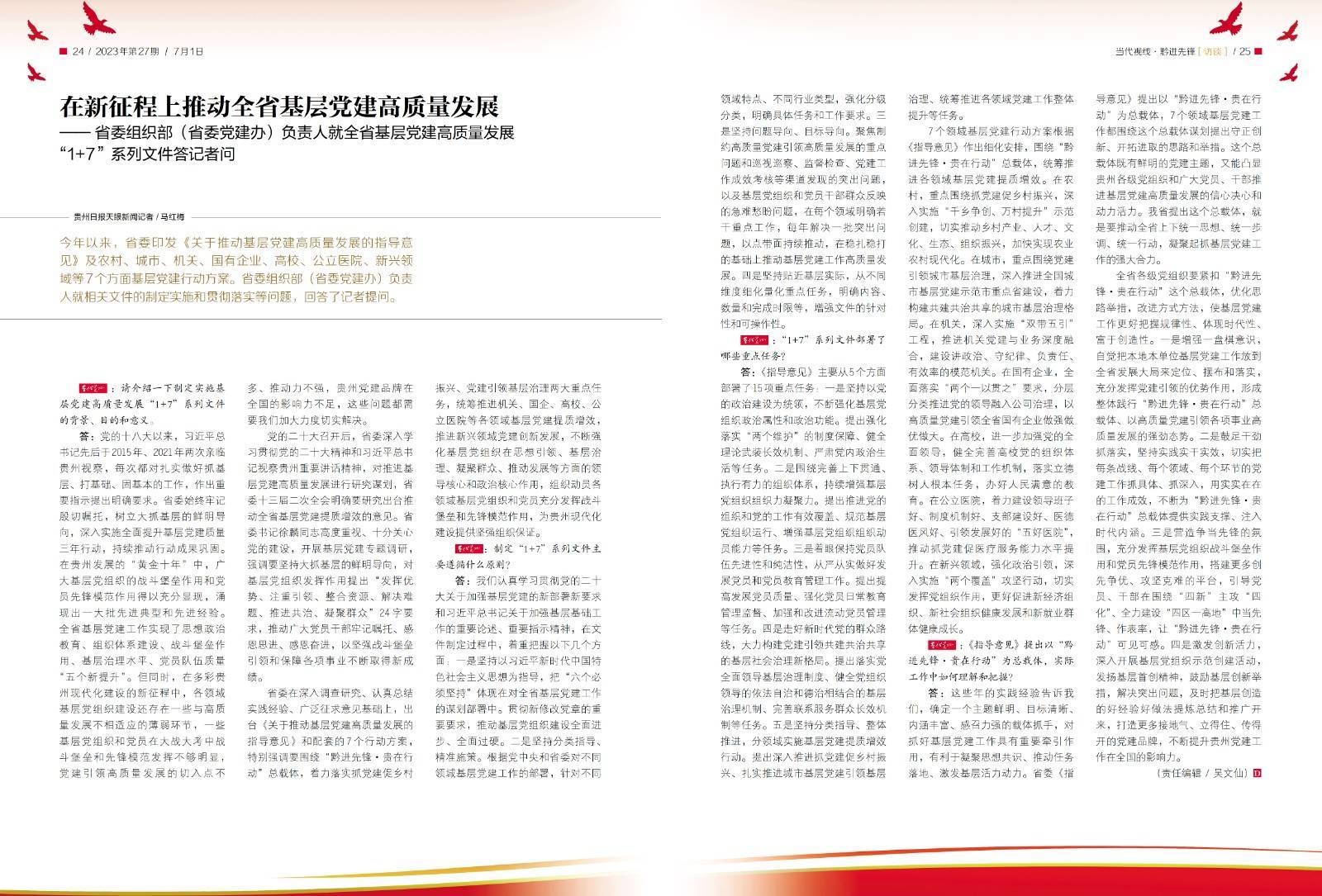 基础不牢,地动山摇。迈向新征程,我们将始终坚持大抓基层的鲜明导向,发挥好基层党组织的战斗堡垒作用和党员先锋模范作用,让基层党建主阵地不仅“铺天盖地建起来”,更“顶天立地强起来”,用担当与行动诠释“黔进先锋”在中国式现代化的贵州实践中的奋进力量。