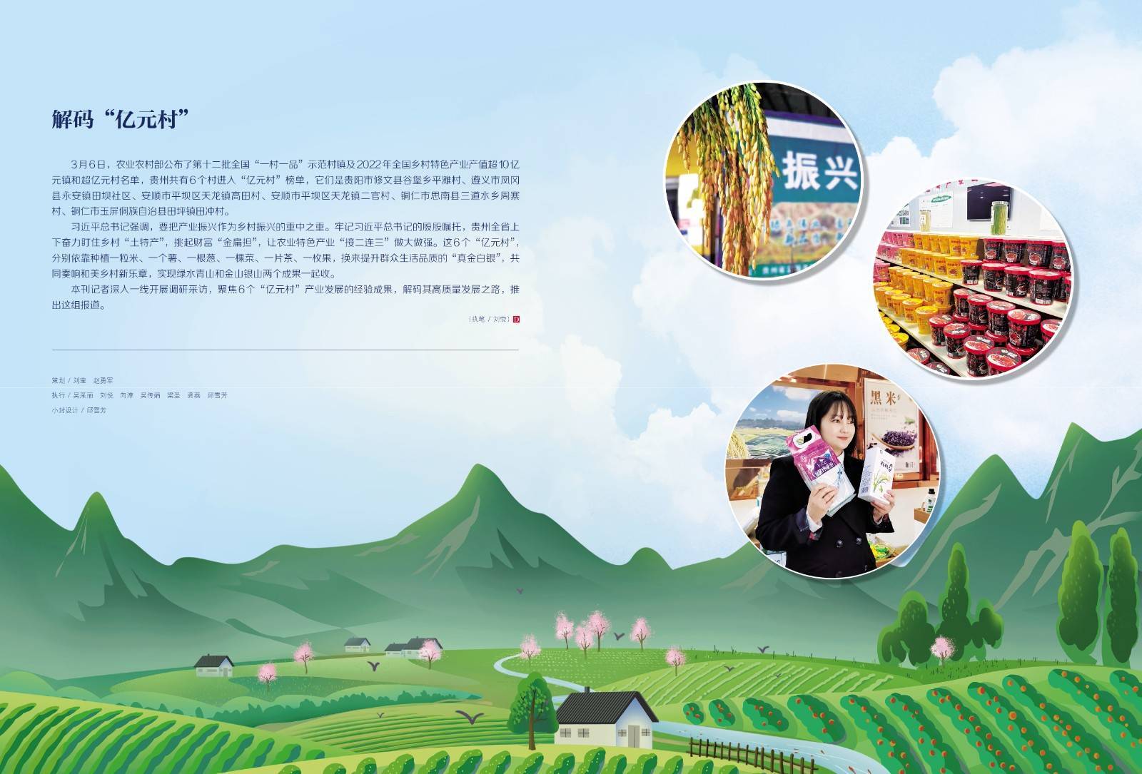 3月6日,农业农村部公布了第十二批全国“一村一品”示范村镇及2022年全国乡村特色产业产值超10亿元镇和超亿元村名单,贵州共有6个村进入“亿元村”榜单,它们是贵阳市修文县谷堡乡平滩村、遵义市凤冈县永安镇田坝社区、安顺市平坝区天龙镇高田村、安顺市平坝区天龙镇二官村、铜仁市思南县三道水乡周寨村、铜仁市玉屏侗族自治县田坪镇田冲村。