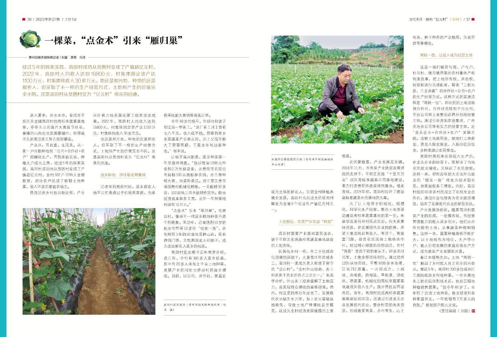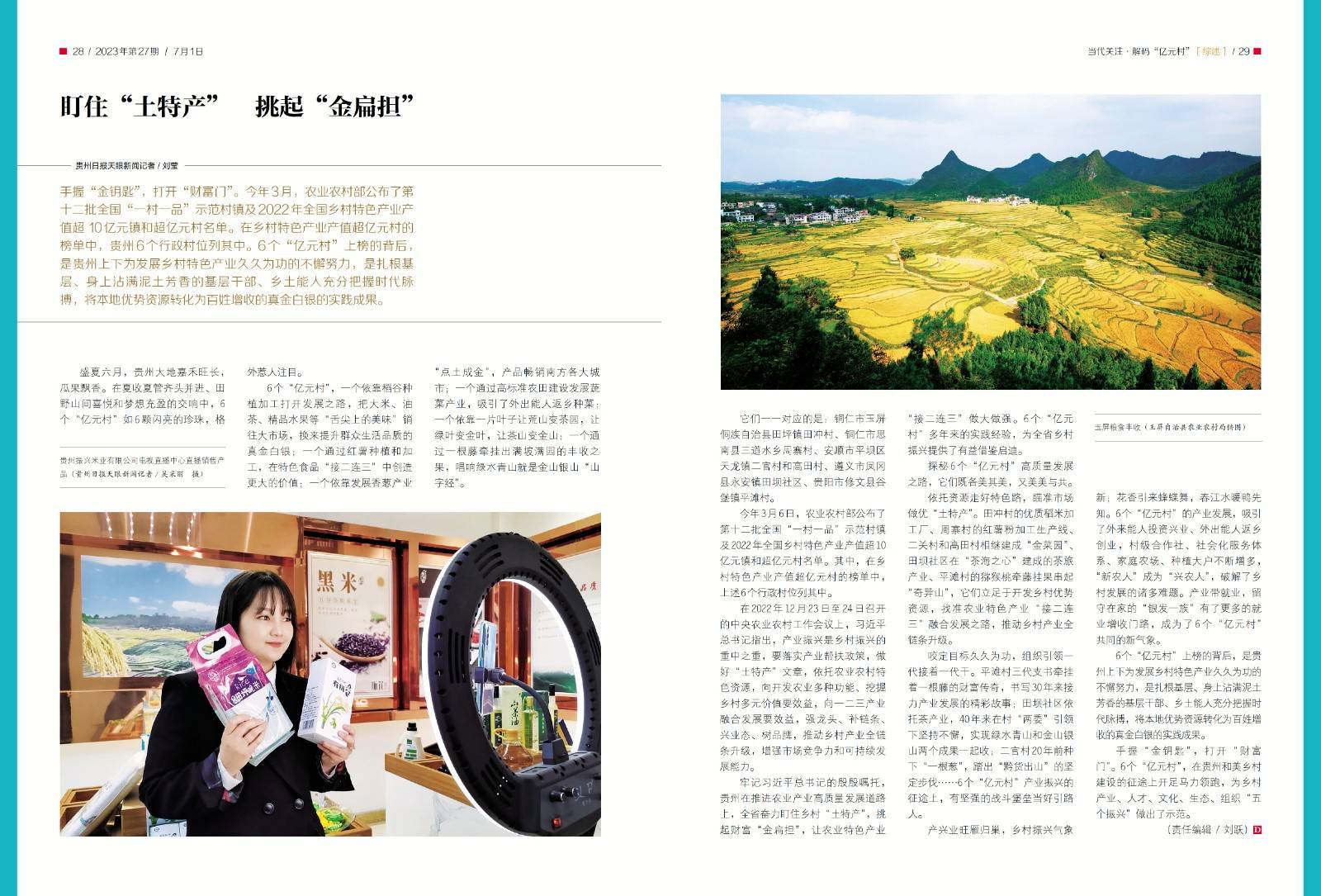 习近平总书记强调,要把产业振兴作为乡村振兴的重中之重。牢记习近平总书记的殷殷嘱托,贵州全省上下奋力盯住乡村“土特产”,挑起财富“金扁担”,让农业特色产业“接二连三”做大做强。这6个“亿元村”,分别依靠种植一粒米、一个薯、一根葱、一棵菜、一片茶、一枚果,换来提升群众生活品质的“真金白银”,共同奏响和美乡村新乐章,实现绿水青山和金山银山两个成果一起收。
