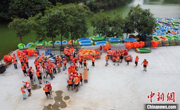 图为市民游客正在准备登船漂流。姚伦毅 摄