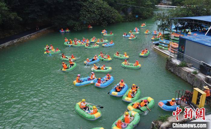 图为许多市民游客正在河道上体验漂流。姚伦毅 摄