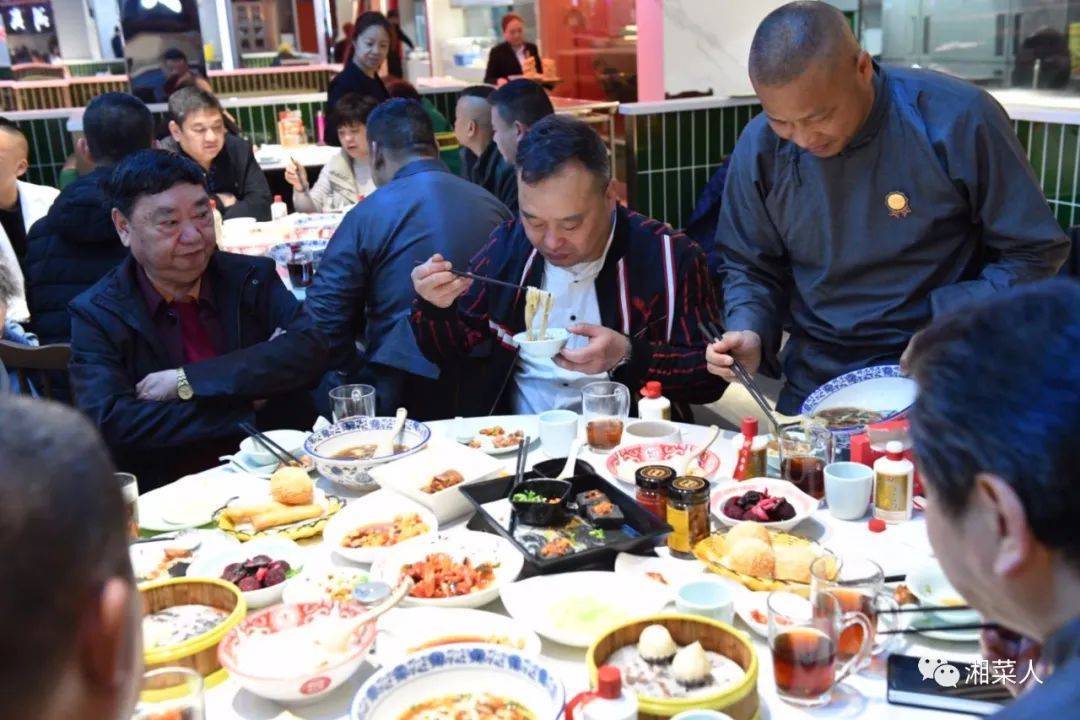 秉持着“弘扬餐饮文化,促进早餐经济,振兴乡村农业,实现健康快乐”的核心精神,湖南早餐经济促进委员会第二站,长沙市餐饮行业协会会长任伟政与湘菜泰斗王墨泉,以及黄惠明、肖克资、李建波、陈刚、阮海鸥、杨永红、王正凯、程龙华、黄明辉、李国柱、郭雄辉、汤伟等多位湘菜大师就来到了不少长沙老朋友的“早茶专属地”——坡子街火宫殿,感受这份清晨独有的烟火热闹。