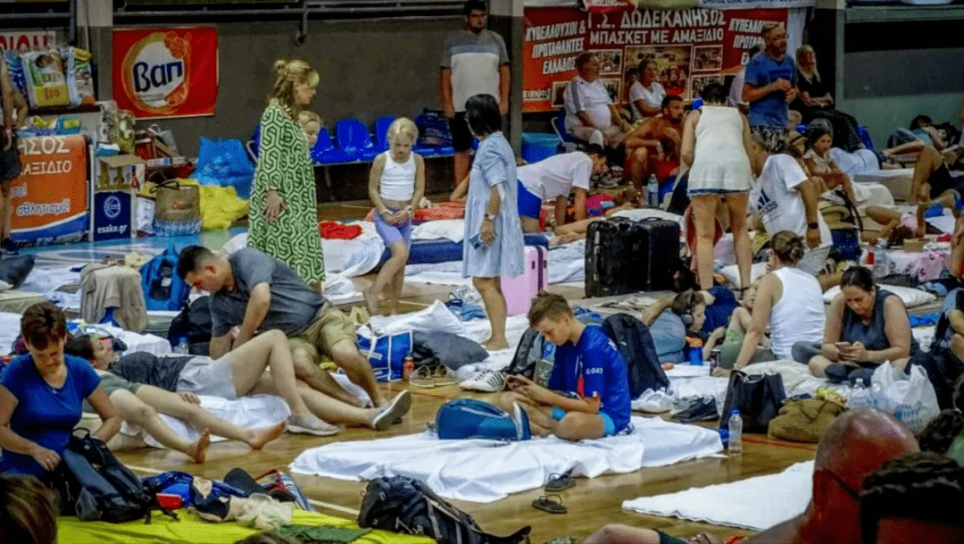 这几日,由于高温、干燥和强风等因素叠加,罗得岛野火蔓延。游客们被迫开启了“生存演习模式”。
