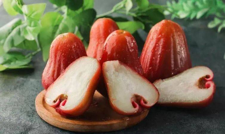 莲雾是一种美味的热带水果,它含有丰富的蛋白质、矿物质等多种营养物质,还有丰富的维生素C和维生素B2,具有很强的抗氧化作用,可以起到美白养颜的作用。