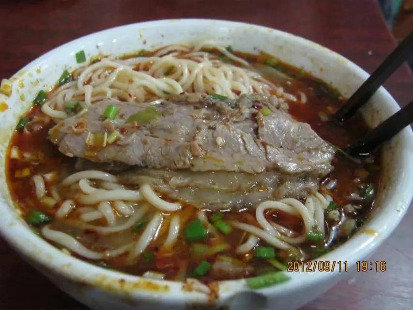 这里的兰州拉面跟北京的拉面不一样,北京的拉面如汪汪的放几片肉,白汤,这里的拉面放辣子,汤是红色的,与北京的截然不同,而且面的口味口感也与北京的不同。