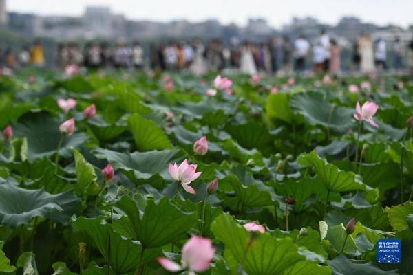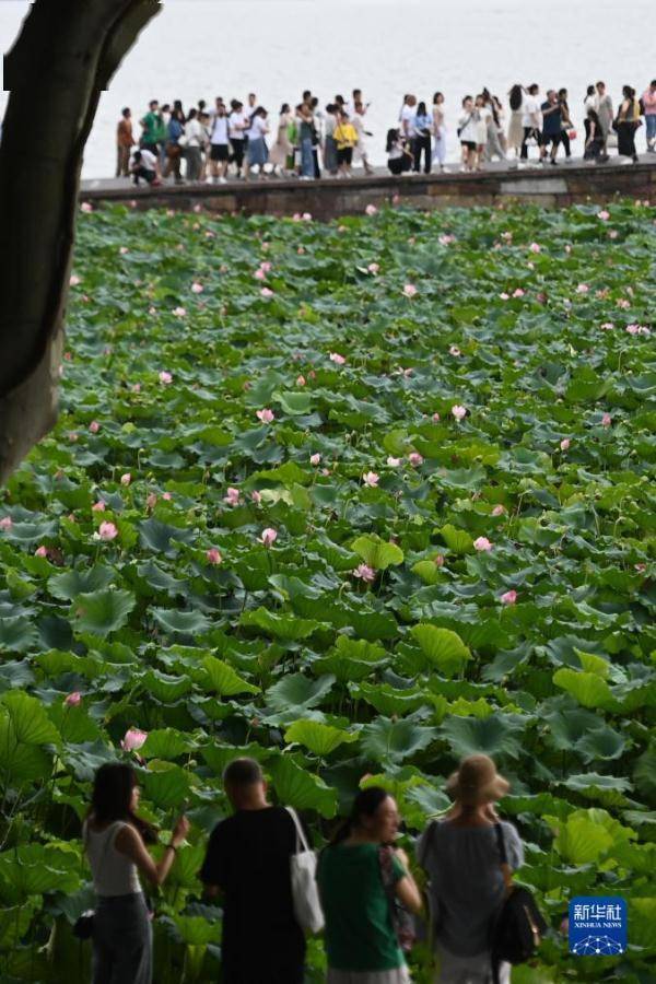 时值盛夏,杭州西湖景区荷花竞相绽放,呈现出“接天莲叶无穷碧,映日荷花别样红”的美丽景象。